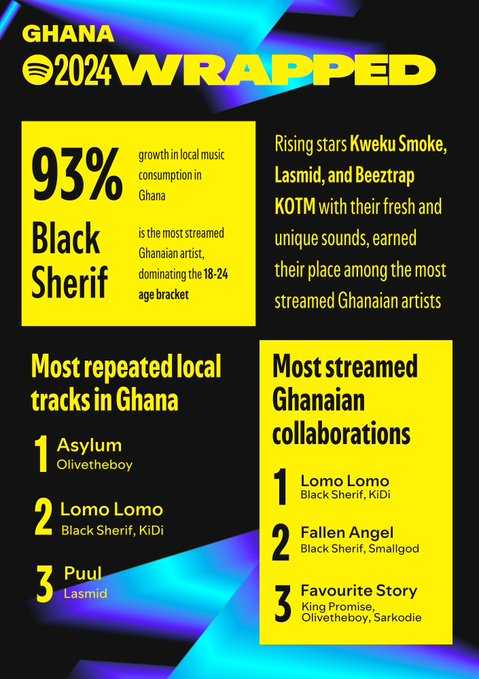 Spotify has officially rolled out its 2025 Wrapped data for Ghana, and the results once again affirm what many music lovers already know: Black Sherif is the unstoppable streaming champion of the nation.