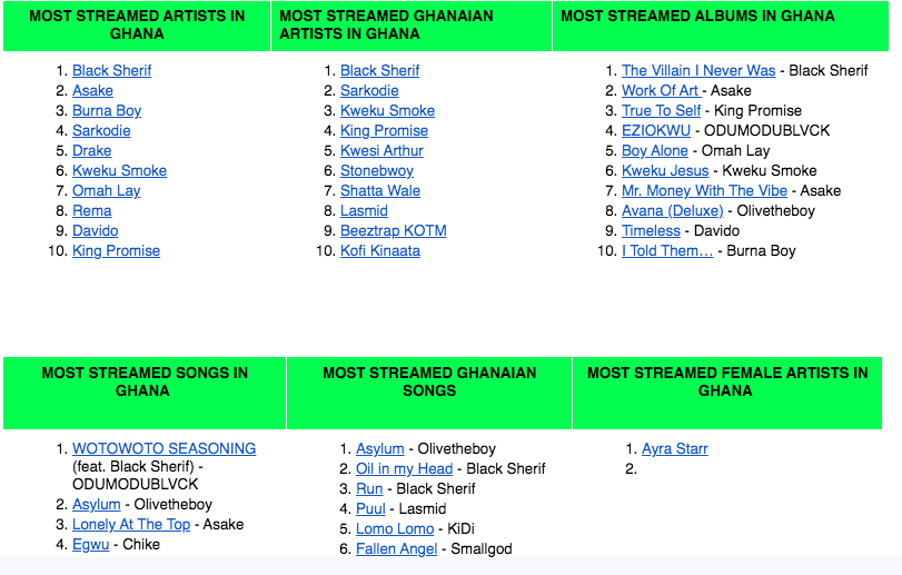 Spotify Wrapped 2025 – Top 5 Artistes in Ghana