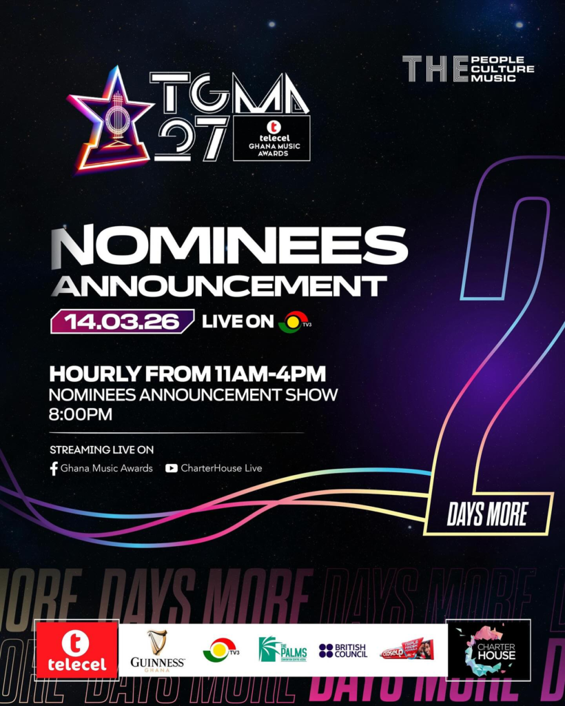 Organisers of the Telecel Ghana Music Awards (TGMA) have announced that nominees for the 27th edition of the prestigious awards scheme will be unveiled on Saturday, March 14, 2026.