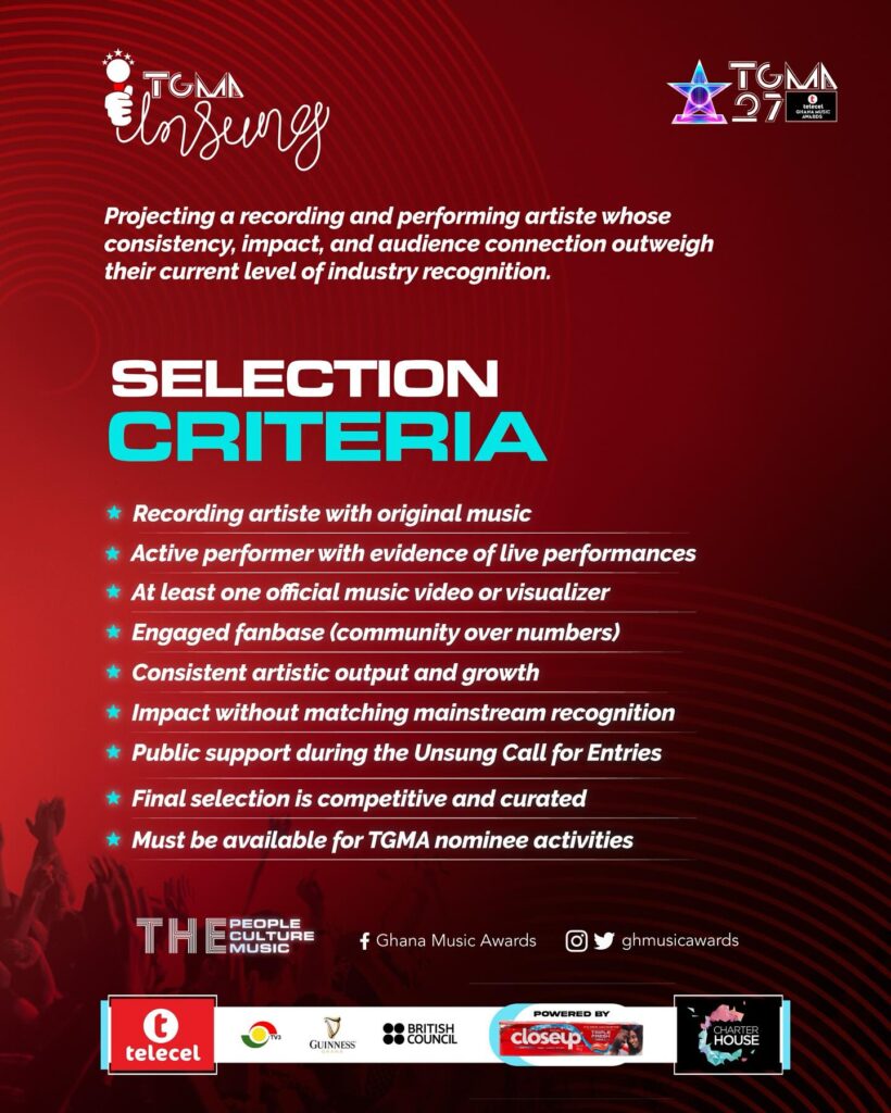 In line with this vision, the TGMA board has also unveiled the criteria for the Unsung Category, a special recognition designed to celebrate talented artistes who are yet to achieve mainstream popularity. The category aims to provide promising musicians with a platform to gain national visibility and industry support.