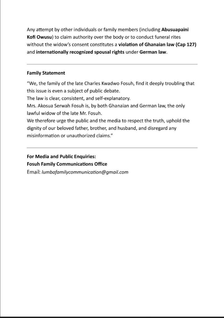 In a statement dated October 26, 2025, and signed by Akosua Serwaa and Ernestina Fosuh, a sister of Daddy Lumba, the family described the claim as false and misleading.