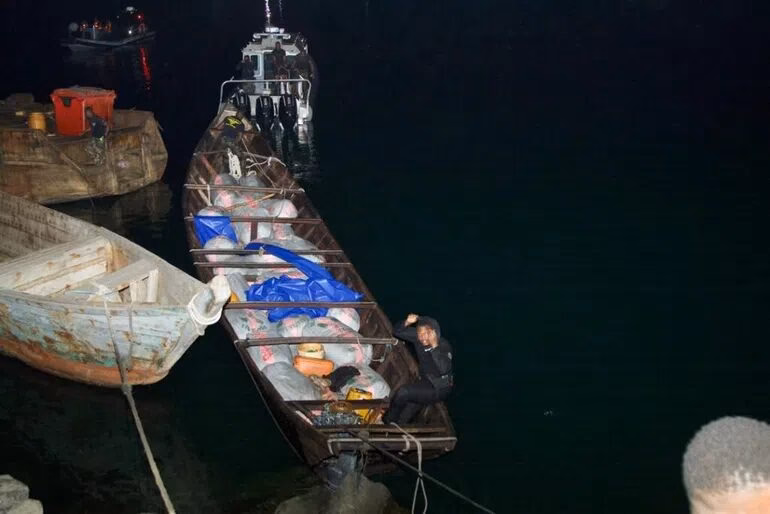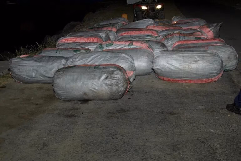 A subsequent search of the canoe uncovered 37 sacks of compressed substances believed to be cannabis. Each sack is estimated to contain approximately 70 parcels, indicating a significant quantity of the illicit substance.